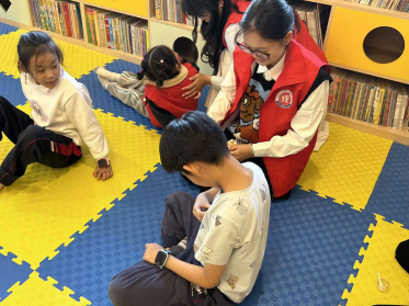 在10分钟的互动环节中,青马班学员表演校园欺凌、网络传谣、损坏公物三个情景剧,邀请小朋友扮演“小法官”判断对错并说明理由,深化其对违法行为的认知。随后,进行5分钟总结宣誓,带领全体小朋友起立宣读“普法小卫士宣誓词”,强化活动记忆;最后为积极参与问答的小朋友发放精美贴纸、小挂件等小奖品。