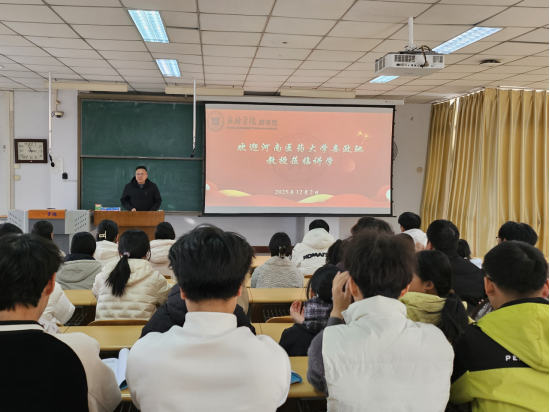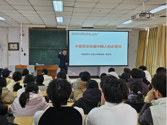 为深入贯彻习近平总书记关于中医药工作的重要指示精神,弘扬中华优秀传统文化瑰宝,提升药学院学子的文化自信与专业素养,2025年12月2日,药学院特邀河南医药大学第三附属医院中医学教研室娄政驰副主任医师,为药学专业学生带来了题为“中医药文化是中国人的必修课”的中医药文化讲座。药学院副院长齐永华主持此次讲座,药学专业100余名学生参加了讲座。