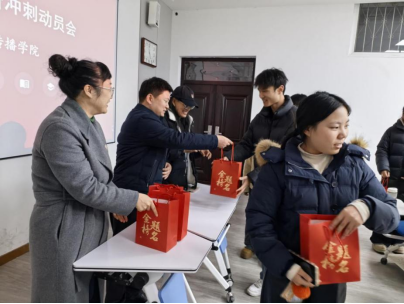 为深入了解考研学子的备考需求,提供针对性指导与支持,新闻传播学院于12月4日下午在A05-206教室举办了一场温馨而务实的考研学生备考冲刺动员会。学院党委书记王卫锋、副书记贾菁、副院长孙桂杰,辅导员王杰、教师代表段筱与30余名考研学子面对面交流,并现场发放了学院精心准备的“加油大礼包”,为冲刺阶段的学子注入温暖与力量。