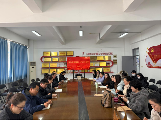 3月3日,音乐学院在A04-202会议室召开党委(扩大)会议,深入学习贯彻习近平总书记关于树立和践行正确政绩观的重要论述,传达学校党委(扩大)会议精神,部署启动学院学习教育工作。学院党委书记梁记安主持会议并讲话,班子成员、科级干部、教师党员参加会议。