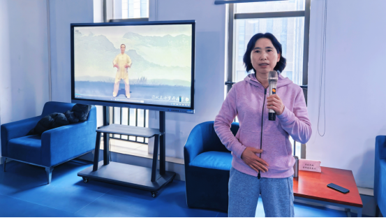 伴随着轻快的音乐,全体人员在张老师的带领下进行了热身运动,大家活动关节,拉伸筋骨,为接下来的练习做好充分准备。随后,张老师对八段锦中经典动作逐个进行了分步讲解和演示,她耐心细致地传授动作要领,并指导大家如何将呼吸吐纳与肢体动作相配合,让老师们在动静结合间领悟八段锦强身健体的内在精髓。活动现场气氛热烈,老师们热情高涨。图书馆坚持将八段锦列为上午工间操练习项目,大家纷纷表示,此次邀请张老师进行专业指导,动作更加规范,锻炼效果也明显提升。