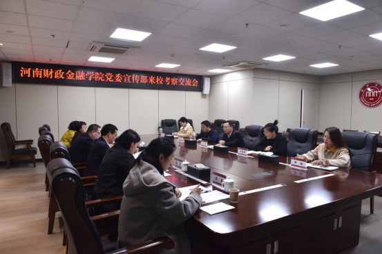 为进一步加强高校宣传思想工作交流互鉴,推动宣传工作提质增效、协同发展,3月20日上午,河南财政金融学院党委宣传部部长崔潮率队,副部长戴亚军、张颖、杨康宁及相关科室工作人员随同来访莅临我校,我校党委宣传部常务副部长苏辉,副部长郝慧娟、高峥及宣传部相关科室人员陪同,在行政楼901会议室进行交流座谈,双方就高校宣传工作的经验做法、创新路径与发展方向进行了深入探讨。