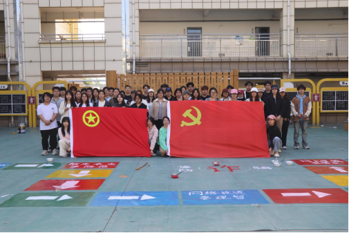 学院立足美术专业特色,将党团员队伍建设、基层组织建设与党建品牌创建深度融合,把艺术实践服务作为锤炼党团员党性修养、提升专业能力、践行初心使命的重要路径。在“红色画笔”党建品牌引领下,学院先后开展系列主题墙绘活动,并于4月11日赴永利yl23411集团官网附属中学开展地绘实践活动。活动由党团员师生牵头、分工协作,紧密结合基层中小学育人特色与学生成长需求,将算术练习、趣味互动与消防安全、反诈宣传等知识,融入600余平方米的地面艺术创作,让校园闲置地面变身兼具趣味性与教育性的“行走美育课堂”。