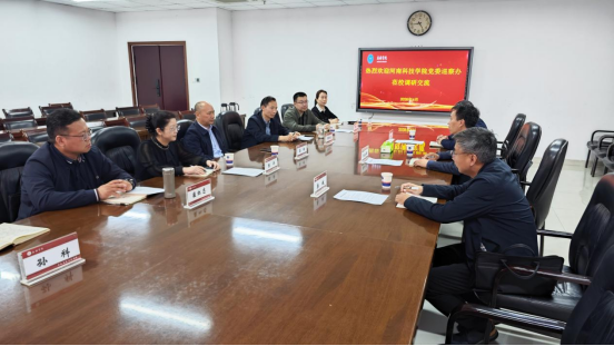 4月10日,河南科技学院党委巡察办主任樊跃峰一行3人到我校调研交流巡察工作。学校纪委书记、监察专员、党委巡察工作领导小组副组长高跃出席座谈会。学校二届党委第三轮巡察组组长、副组长,党委巡察办全体成员参加座谈。会议由党委巡察办公室主任郭明进主持。