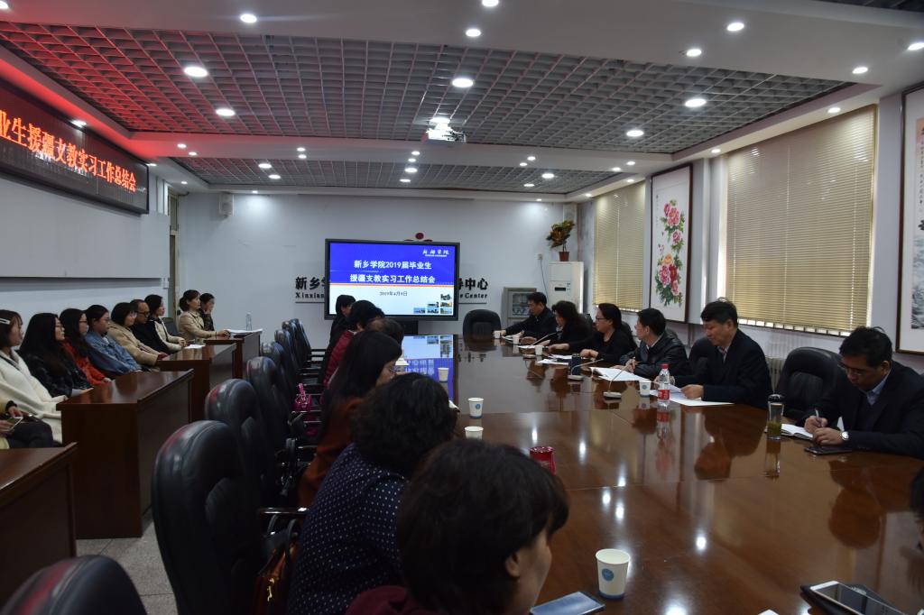 4月9日下午,我校在行政楼第一会议室召开2019届毕业生援疆支教实习工作总结会。校长刘兴友、副校长吴中出席会议,文学院、外国语学院、教育科学学院、数学与信息科学学院、艺术学院等部门的党总支书记、院长、副院长,赴新疆支教实习学生代表以及实习指导老师代表参加了会议。会议由教务处处长夏锦红主持。