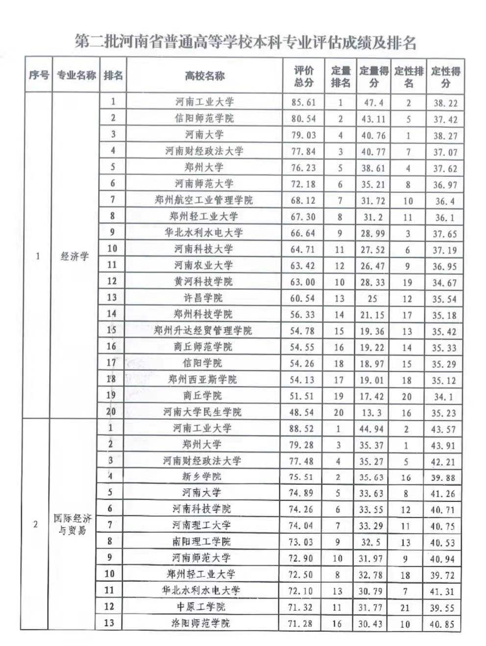 11月2日,河南省教育厅公布了第二批河南省普通高等学校本科专业评估结果,商学院国际经济与贸易专业在全省37所设置该专业的参评院校中以评价总分75.51的成绩排名第4位,专业综合评价工作取得了优秀成绩,在同类院校中居领先水平。在专业建设、教育教学改革和人才培养质量方面获得了省教育厅、同行和社会的认可。