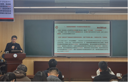 马保玉老师围绕“深刻领会和把握进一步全面深化改革的重大意义、总体要求、重大举措、根本保证”四个方面进行深入讲解。从国际形势、科技革命、产业变革等方面分析了当下所面临的机遇和挑战。并结合教育领域及我院实际情况,详细介绍了教育、科技、人才等多方面的改革举措和重点任务,激发了教师们在岗位上落实改革举措的深入思考和积极探索。