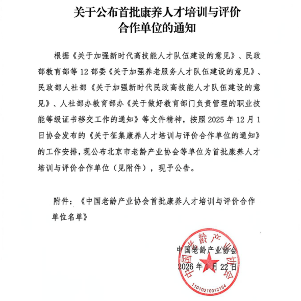近日,中国老龄产业协会发布了《关于公布首批康养人才培训与评价合作单位的通知》,永利yl23411集团官网成功入选首批康养人才培训与评价合作单位名单,标志着我校在康养人才培养领域迈出了重要一步。