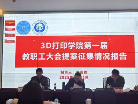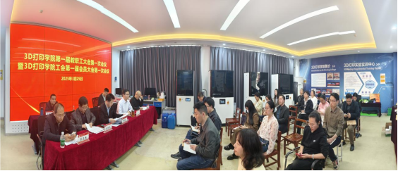 3月25日下午,3D打印学院第一届教职工大会第一次会议暨3D打印学院第一届会员大会第一次会议成功举行。此次会议旨在加强学院民主管理,促进教职工参与学院事务,共同推动3D打印技术的教育与研究事业迈向新台阶。3D打印学院党委书记田文强,院长片春媛,党委副书记刘传虎,副院长张涛、李在林及全体教职工参加了此次会议,会议开幕式和闭幕式均由刘传虎主持。