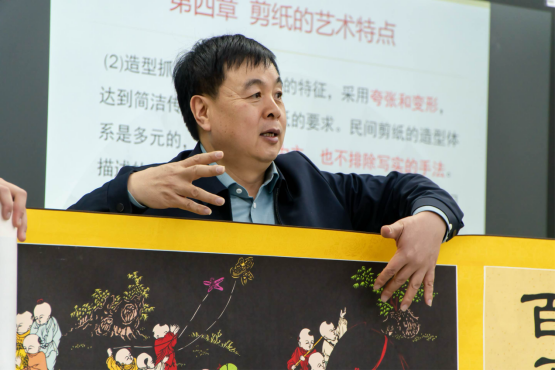 3月27日下午,河南大学文化旅游学院文产系副教授、中国民间文艺家协会会员、河南省民间工艺美术大师、河南大学剪纸艺术研究中心主任、开封市民间文艺家协会副主席张朝晖,为美术学院师生带来了一场题为“中国民间剪纸的艺术特色”的精彩讲座。