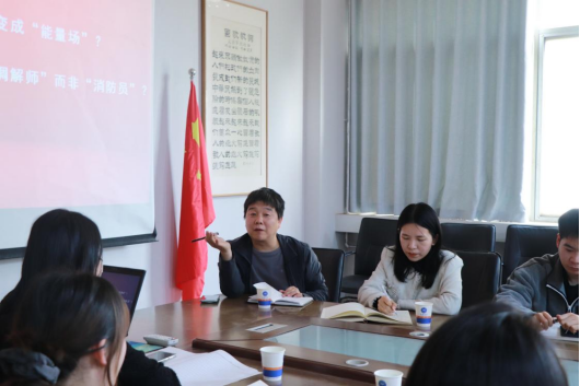 在案例研讨环节,参会辅导员围绕“团辅式班会设计”“宿舍矛盾调解”展开讨论。各学院结合专业特色分享经验与思路,如体育学院借“团队协作体育训练”助新生破冰,新闻传播学院以“微视频创作”班会提升参与度,音乐学院将人际关系融入艺术创作实践。大家提出众多实操性建议,为解决学生教育问题提供新思路。于洪超肯定成果并提出,要将成果转化为实操方案,建立常态化交流机制,总结管理教育经验,建设好案例库。