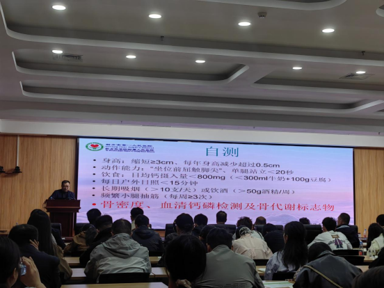 此次讲座特邀我市第一人民医院的专家团队前来授课。活动现场气氛热烈,教职工们认真聆听专家的讲解,积极与专家互动交流。讲座内容丰富实用。骨科王鑫主任详细讲授了颈肩腰腿痛方面涉及腰肌劳损、骨关节炎、骨质疏松等常见疾病的预防、保健、识别及处理方法,为长期伏案工作的教职工提供了针对性的健康指导。心内科杨涛主任对高血压病的诊断和治疗进行了深入浅出的讲解,帮助教职工更好地了解和管理自己的血压健康。呼吸科张祥杰主任围绕慢阻肺、肺结节等呼吸系统常见问题展开科普,并现场进行了慢阻肺初筛问卷调查,为有需要的人员提供了免费肺功能检查的机会。通过专家的讲解和互动,教职工们不仅增长了健康知识,还增强了自我保健意识,为更好地投入工作和生活奠定健康基础。