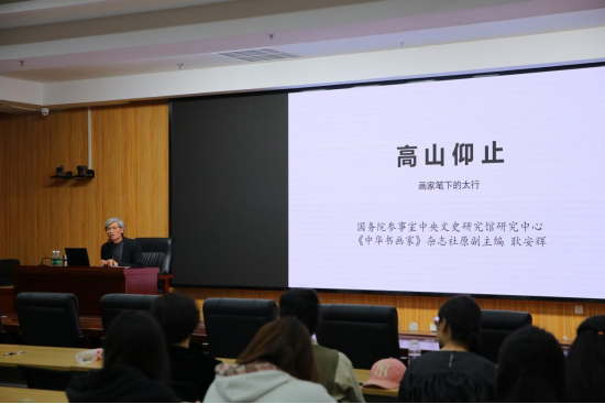 4月9日下午 ,美术学院举办“高山仰止 —— 画家笔下的太行”学术讲座。原中央文史研究馆馆刊《中华书画家》杂志副主编,中央文史研究馆书画院研究员、理论部主任耿安辉先生,以“写生与创作的内在逻辑”为主线,结合中央美院等国画大师的太行题材作品,展开了一场跨越时空的艺术对话,为在场师生及艺术爱好者呈现了太行山水从自然意象到文化符号的精神升华历程。讲座由美术学院院长耿聪教授主持。