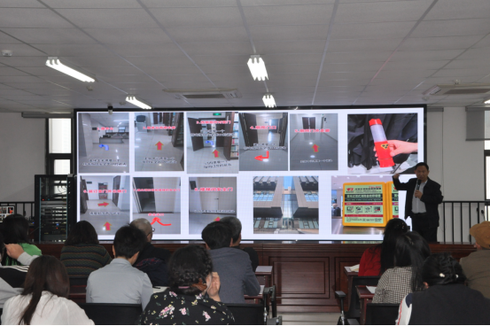 同时,陈国胜结合4月11日开展的图书馆消防疏散演练,就演练预案的准备、消防演练前组织全馆科级及以上干部进行演练前预设问题及对策的研讨,演练现场中学生及其他参演人员需要加强演练的环节,以及在副校长张银堂的组织下,市红旗区消防大队、图书馆、保卫处、学生处、实验实训中心、后勤处等单位领导对演练的简要回顾与讨论情况,向大家作了介绍,并对后续优化疏散标识的张贴、消防照明手电等硬件设备的配置、疏散通道的畅通、教师的引导等技术问题做了详细的提示。课上,他强调要将安全教育作为一项基础性、常态化工作,强化演练,不断拓展安全教育活动的广度和深度。