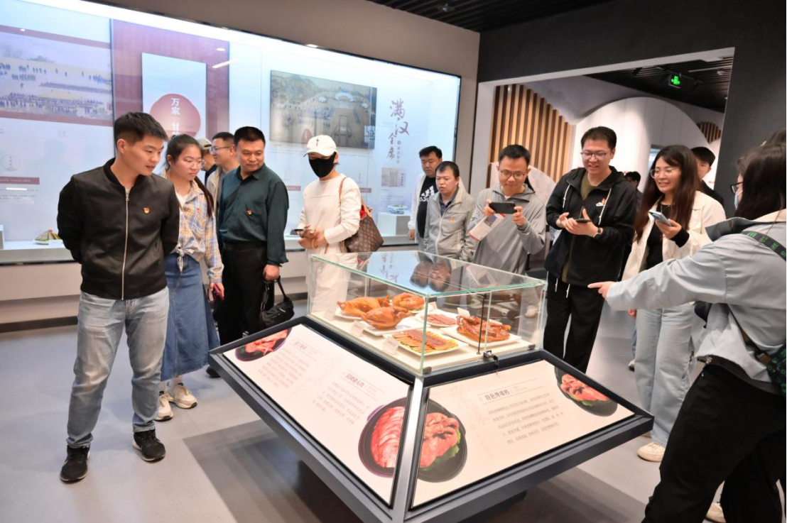 在九多肉多文化园,党员们了解到其现代化预制菜生产加工模式及严格冷链控制流程,科技赋能产业发展的先进技术吸引着大家的目光。