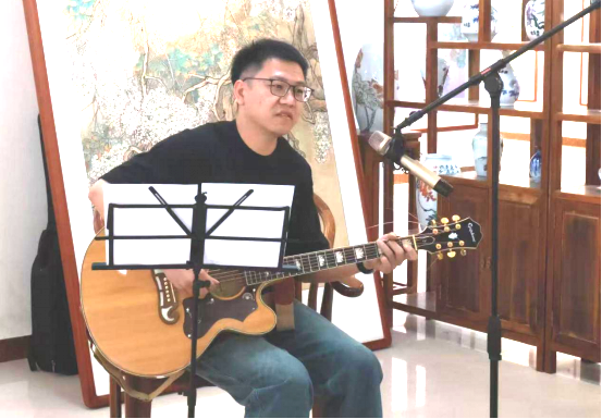 活动中,机电工程学院刘翔老师的吉他弹唱《父亲写的散文诗》,贴合活动主题,情真意切的歌声,打动每一位在场的听众。