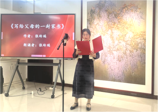 在原创家书诵读环节,教职工们展示了写给父母、子女的私人书信。财务处的刘侃老师、数学与统计学院的张玲瑞老师、马克思主义学院李艳霞老师深情满心、声泪俱下地诵读了写给家人的亲笔信,字字动情、句句感人,让大家跟随她们的笔墨,体味厚重的当代家风。也引发了大家对优秀家风传承的深层思考。