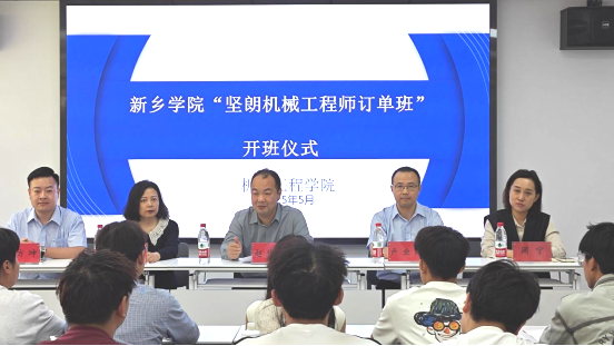 赵伟杰首先致辞,他指出,本次合作是响应国家“科教兴国、人才强国”战略的生动实践,“坚朗订单班”的设立开创了“四维融合”人才培养新模式,使学生未出校门即掌握机械设计、智能制造等专业核心技能,“扶优助困”机制的设立,让每一位有志于机械事业的学子都能在公平的平台上绽放光彩。他勉励同学们,珍惜这个“既是学生又是准工程师”的双重身份,既要夯实学校教授的理论知识,更要主动参与企业导师指导的专业技能提升、素质拓展活动,在解决实际工程问题中锤炼工匠精神。最后,赵伟杰提出期待,希望通过校企的深度协同,将“坚朗班”打造成为中原地区产教融合的标杆项目,让更多闪耀着“中国智造”印记的坚朗五金走向世界舞台!