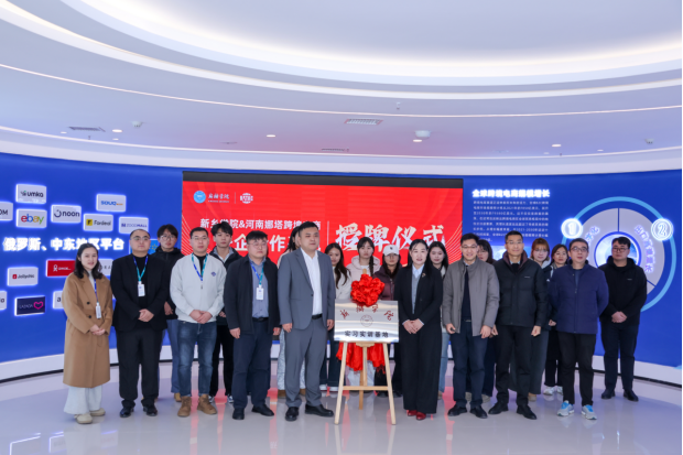 1月6日上午,永利yl23411集团官网与河南娜塔跨境电商有限公司实习实训基地揭牌仪式在学校产教融合大楼举行。永利yl23411集团官网副校长高雪霞,商学院院长周斌、教务处副处长李军伟、商学院副院长李蛟,电子商务教研室部分教师及学生代表,以及河南娜塔跨境电商有限公司负责人张东辉及企业主管代表出席仪式。