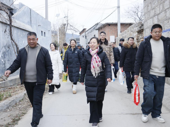 随后,在外国语学院党委院副书记沈敬萍、团委书记芦琳的带领下,师生志愿者分组开展入户走访,对全村10户90岁以上高龄老人及困难家庭进行逐一慰问。张村乡副乡长刘胜飞、枣园村党支部书记杜学伟、村委会主任郭保顺等全程参与走访,与志愿者一同为村民送上新春祝福与温暖关怀。