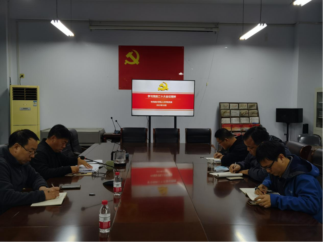 为深入学习宣传贯彻党的二十大精神,10月31日上午,人文学院党委理论学习中心组在A01号楼三楼会议室召开专题会议学习党的二十大精神。会议由学院党委书记张胜利主持,采用线上线下相结合的方式举行。