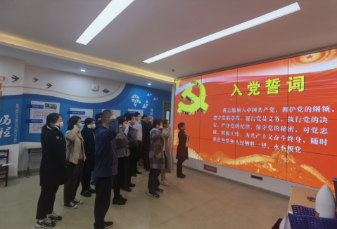接下来,为两位过政治生日的党员教师颁发了政治生日纪念品。随后,全体教师党员通过重温入党誓词坚定理想信念。面对鲜红的党旗,高举右手,紧握拳头,庄严宣誓,铿锵有力的誓词,再一次坚定了党员同志们“为人民服务”的初心和“永远听党话、跟党走”的决心。