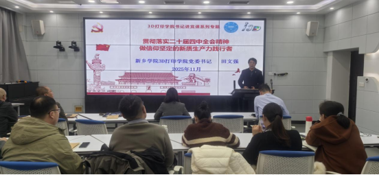 为进一步响应学校党委号召,落实当前“宣传贯彻好党的二十届四中全会精神”这一重大政治任务,11月11日下午,3D打印学院党委开展了一次二十届四中全会精神宣讲专题党课集体学习活动。3D打印学院党委书记田文强以专题党课的形式,向全体教师党员和教职工骨干开展了一场生动丰富的二十届四中全会精神解读宣讲。