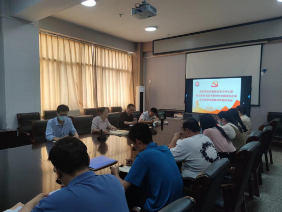 5月16日下午,经济学院党委在学院会议室开展学习贯彻习近平新时代中国特色社会主义思想主题教育专题读书班。会议由学院院长韩楠主持,学院党委理论学习中心组全体成员、科级干部、各党支部书记参加会议。