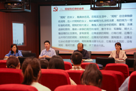 为深入推进学习贯彻习近平新时代中国特色社会主义思想主题教育走深走实,进一步以理想信念铸牢廉洁意识,5月30日下午,新闻传播学院党委在A12五楼审片室开展书记讲党课——“明方向、立规矩、正风气、强免疫”专题纪律教育活动,党委书记王卫锋以《守纪律、讲规矩,做政治上的明白人》为题,为全体教职工讲授了一堂生动的党课。